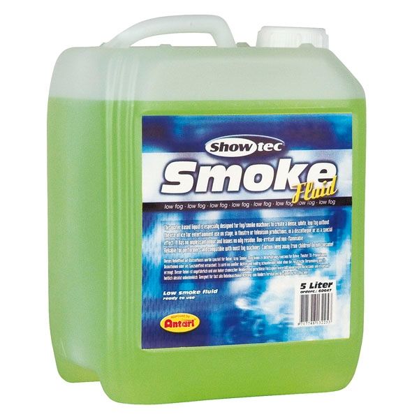 20: Showtec Low smoke fluid 5 Liter: Dieser Nebelfluid auf Wasserbasis wurde speziell für Nebel- bzw. Smoke-Maschinen zu Unterhaltungszwecken für Bühne, Theater, TV-Produktionen, Diskotheken oder als Spezialeffekt entwickelt. Es wird ein weißer, dichter u