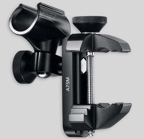 20: Shure A75M Universelle Mikrofonhalterung: Shure A75M Universelle Mikrofonhalterung Robuste Universalhalterung für flexible und sichere Mikrofonplatzierung. Die Schnellspannvorrichtung erlaubt eine äußerst schnelle Befestigung und Entfernung des Mikrofo