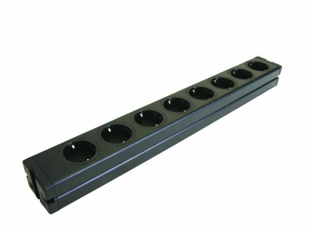 20: Steckdosenleiste ALU 8-fach: Features:Mit 8 Steckdosentöpfen Ohne Kindersicherung Ohne Anschlusskabel Made in Europe Ausgangsbuchse (Strom): Schutzkontakt (W) 8x Verkabelt: Nein Technische Daten:Gewicht: 0,88 kg Abmessung: 49cm x 6cm x 4,5cmKabel > Strom