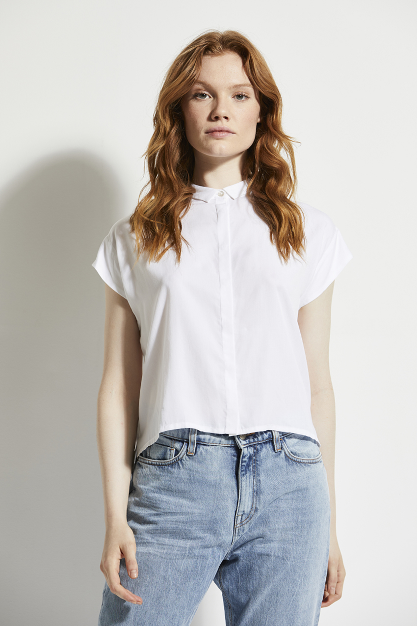Unsere TENCEL square blouse ist genau das richtige für einen minimalistischen, aber gleichzeitig trendorientierten Style. Sie hat einen kleinen Kragen und leicht fallende Ärmel. Zudem liegt sie mit dem kürzeren Schnitt und dem wide fit voll im Trend. Unser Model trägt Größe S.