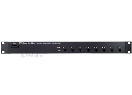 Tascam LA-81 MKII: Features:acht symmetrische XLR-Eingänge und acht unsymmetrische Cinch-AusgängeNominalpegel für XLR-Anschlüsse umschaltbar zwischen +4 dBm und -20 dBmseparate Trimmregler auf der Frontplatte (±6 dB)separate Erdungsschalter für jede