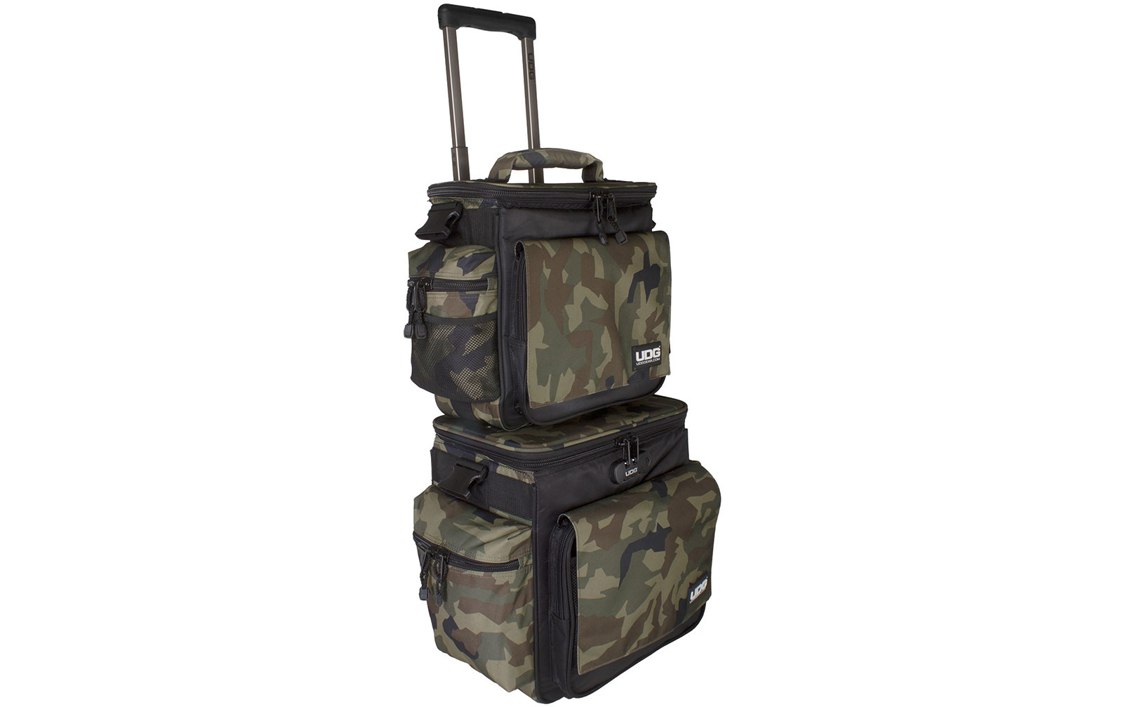 20: UDG Ultimate SlingBag Trolley Set DeLuxe Black Camo, Orange inside (U9679BC/OR): Der weltweit meistverkaufte 12-Zoll-Trolley-Bag wurde durch ein neues verstecktes Trolley-System, leicht laufende Inline-Rollen, galvanisierte Reißverschlüsse und ein integ