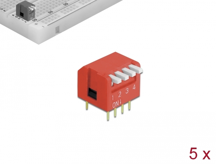 7: DIP-Kippschalter Piano 4-stellig 2,54 mm Rasterma THT vertikal rot 5 Stck, Delock