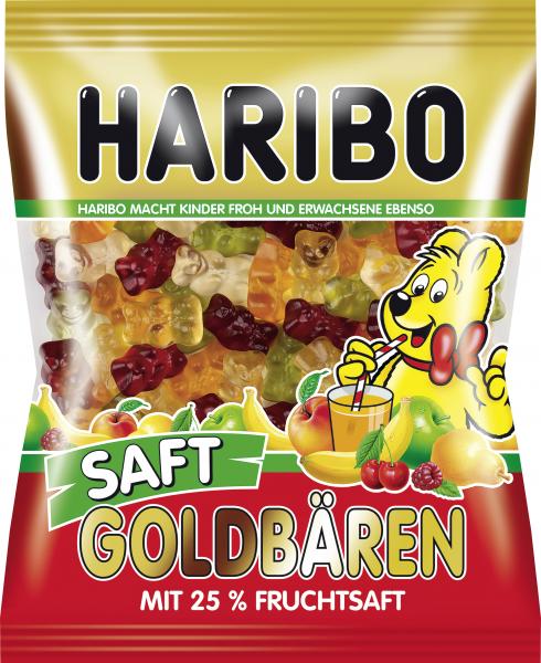 20: Weich, saftig und lecker &ndash, HARIBO SAFT GOLDBÄREN. Sie enthalten 25% Fruchtsaft und sind somit das saftigste Produkt im vielfältigen HARIBO-Sortiment. In den fruchtigen Geschmacksrichtungen Apfel, Banane, Birne, Himbeere, Kirsche und Pfirsich sind sie ein echtes Genusserlebnis. Ohne künstliche Farbstoffe.