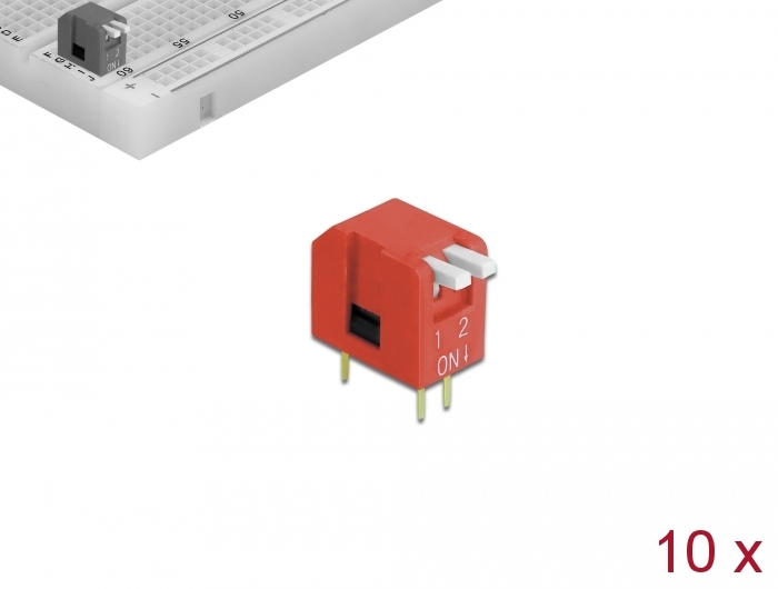 7: DIP-Kippschalter Piano 2-stellig 2,54 mm Rasterma THT vertikal rot 10 Stck, Delock