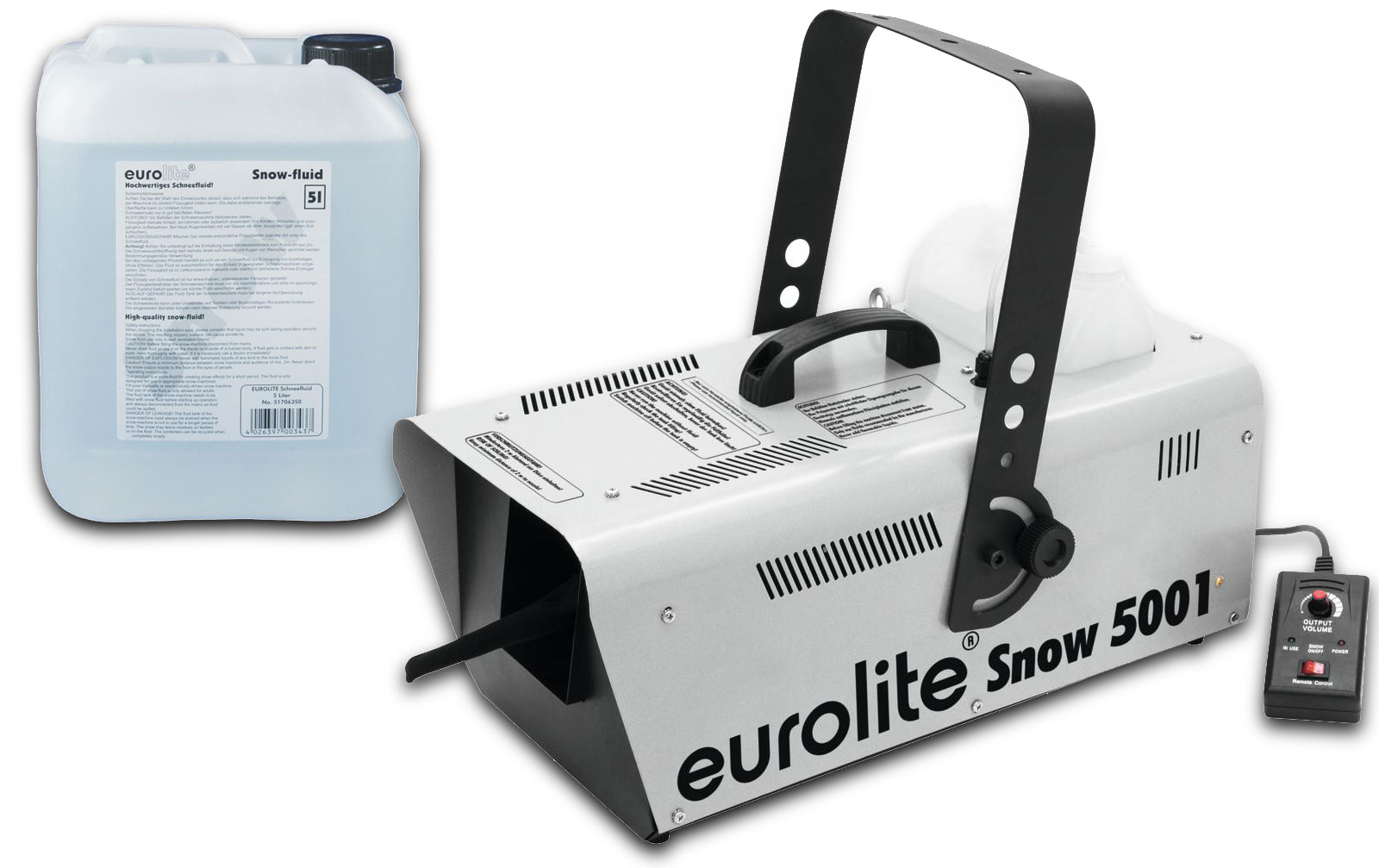 23: Eurolite Set Snow 5001 Schneemaschine + Schneefluid 5l B-Ware