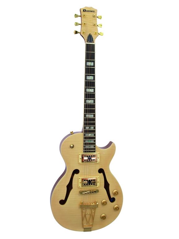 20: Dimavery LP-600 E-Gitarre, natur Ahorn: Features: Farbe: Ahorn naturLP-FormKonstruktion: Verleimter HalsKorpus: LindeDecke: Ahorn Archtop mit F-LöchernHals: AhornGriffbrett: Palisander, 22 BündePickups: 2 x HumbuckerRegler: 2 x Volumen , 2 x TonPU-Schal