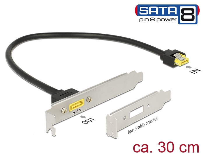 **************************Slotblech SATA 6 Gb/s Buchse intern an SATA Stecker Pin 8 Power extern 30 cm , Delock