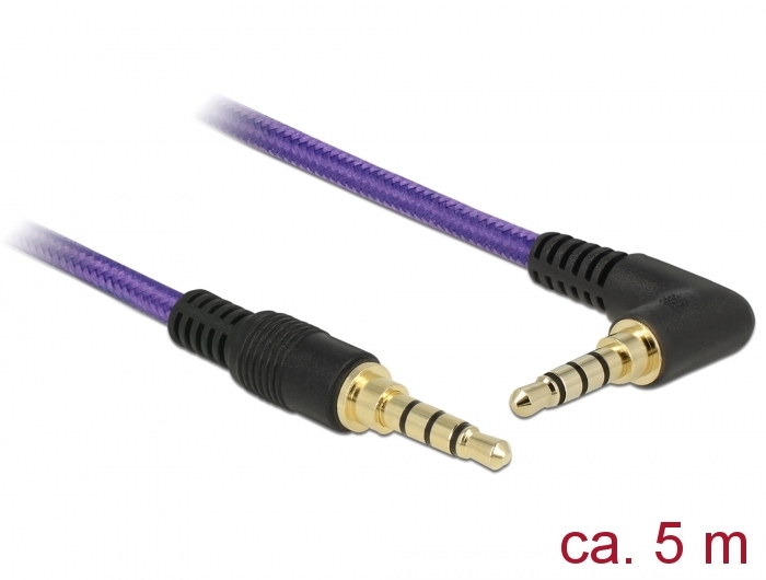 7: Klinkenkabel 3,5 mm 4 Pin Stecker an Stecker gewinkelt, violett, 5m, Delock