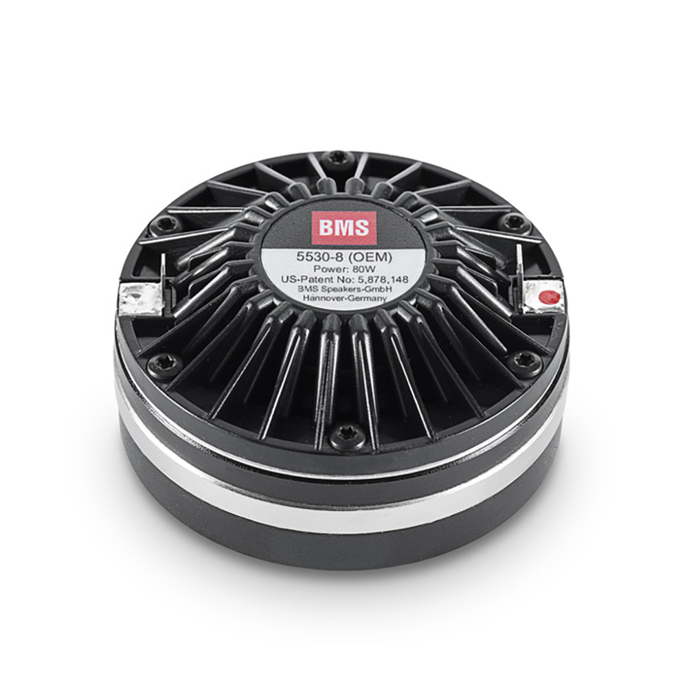 20: BMS 5530 NDH 1` Hochtontreiber 16 Ohm 80 W: Der 5530 NDH ist ein ultrakompakter 1` Hochleistungs-Kompression Treiber mit einzigartigem Leistungs- / Größenverhältnis. Features:Einzigartiges patentiertes Design Neodym-Magnetanordnung 113 dB Empfindlichke