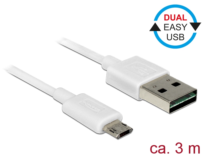 **************************Kabel EASY-USB 2.0 Typ-A Stecker an EASY-USB 2.0 Typ Micro-B Stecker, wei, 3 m, Delock