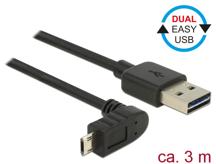 **************************Kabel EASY-USB 2.0 Typ-A Stecker an EASY-USB 2.0 Typ Micro-B Stecker gewinkelt oben / unten, schwarz