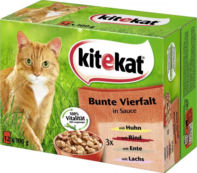 20: Alleinfuttermittel für ausgewachsene Katzen. 3x mit Huhn, 3x mit Rind, 3x mit Ente und 3x mit Lachs. Ohne künstliche Aromastoffe, Konservierungsstoffe und Farbstoffe.